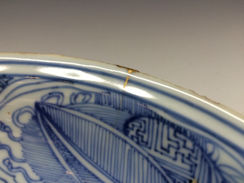 ■作品名■ 青花漏彩草花文盤(古染付)