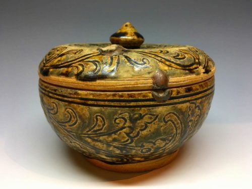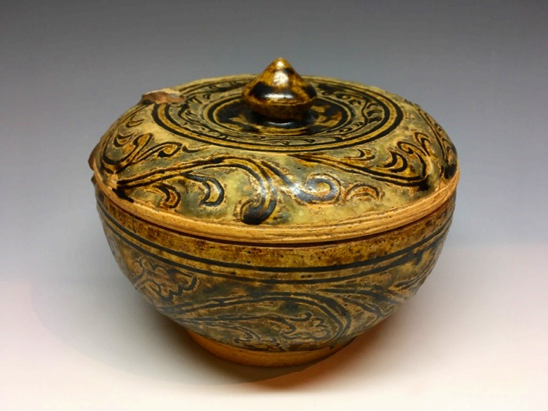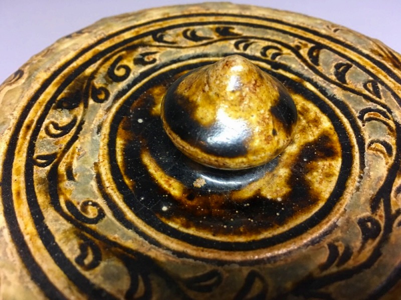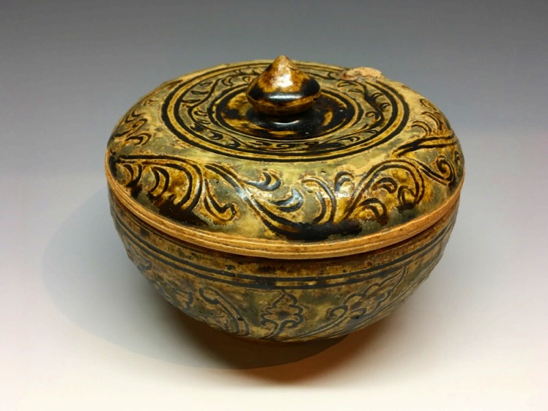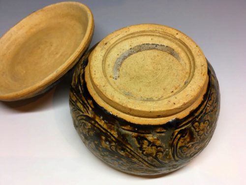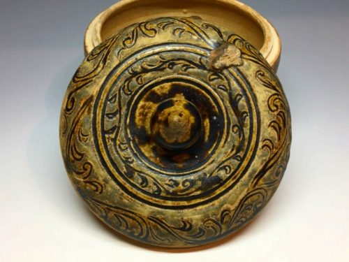宋胡録褐釉唐草文大蓋物(直径13.5cm)