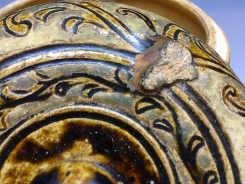 ■作品名■ 宋胡録褐釉唐草文大蓋物(直径13.5cm)