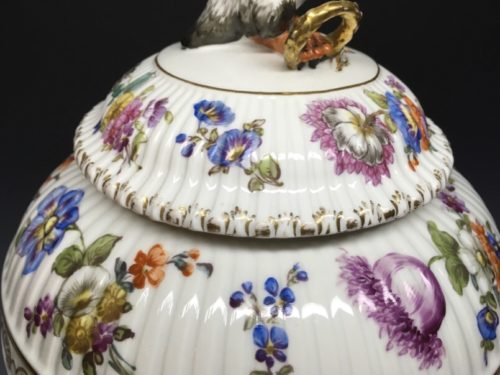 ドイツの名窯 KPM、窯印から判断すると十九世紀前半の作品でしょうか。前所有者が福岡の某有名百貨店の美術サロンにて購入されていらっしゃったものです。 もちろん絵付けは全て手描きで絢爛豪華、大変飾り映えする美しい作品です。
